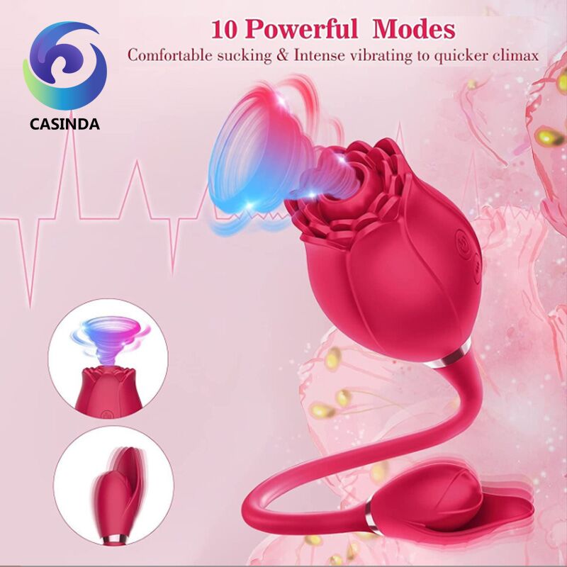 Material: Silicone + ABS Product Usage Overview: Double-headed clitoral sucking plus telescopic vibration flower series Ye Lianhua vibrator fun